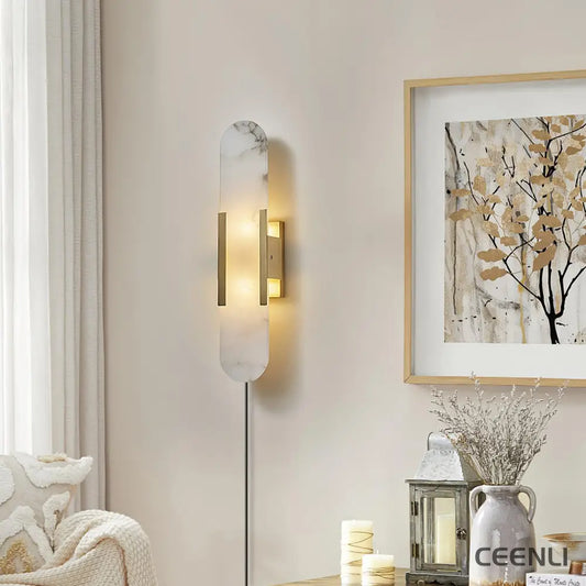 Melange Elongated Alabaster Plug-in Wall Lamp